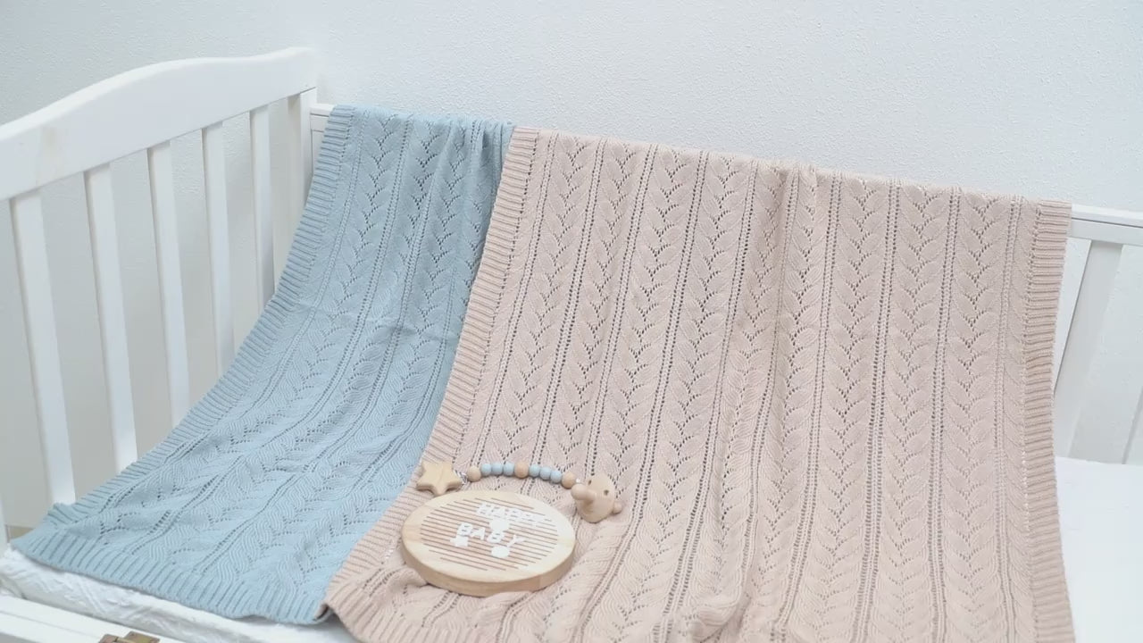 Wrap your little one in softness with the Baby Bloom Co Pure Knitted Baby Blanket, designed for comfort, warmth, and timeless style. Crafted from pure, breathable material, this blanket features a delicate hollow knit pattern that feels gentle on baby’s skin while allowing airflow for year-round comfort.